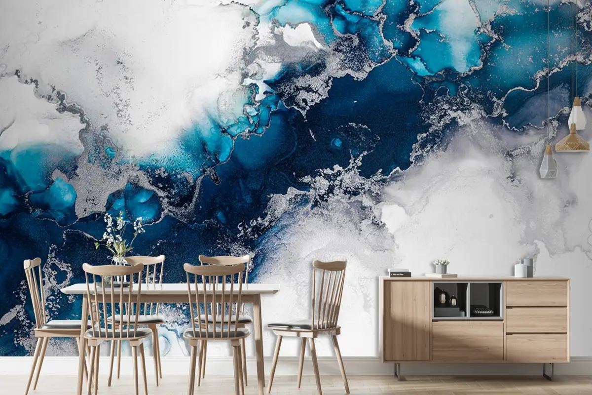 Gri Mavi Tonlarda Mermer Desenli Duvar Kağıdı