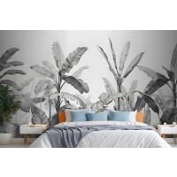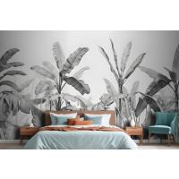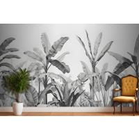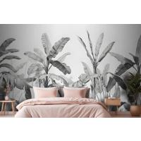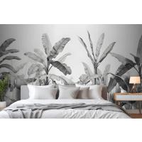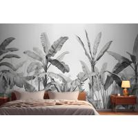Gri Tonlamalı Vintage Tropikal Bitkiler Yatak Odası Duvar Kağıdı