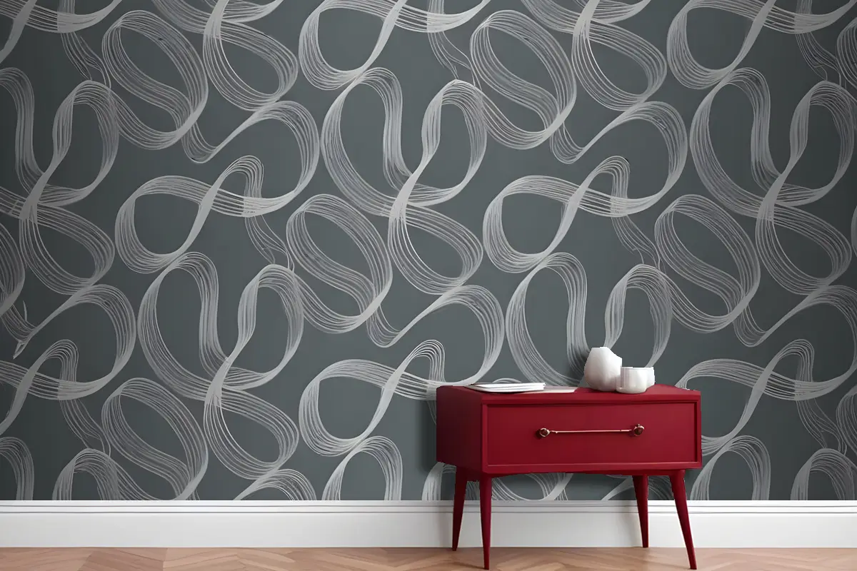 Gri Ve Beyaz Tonlarında Akan Organik Şekillerle Kusursuz Soyut Desen Antre Hol Koridor Duvar Kağıdı