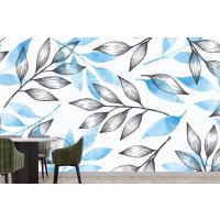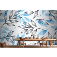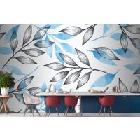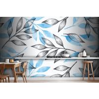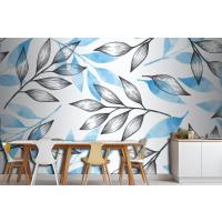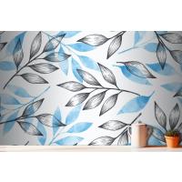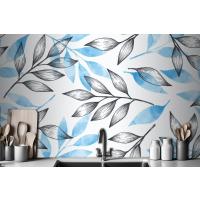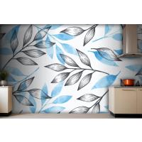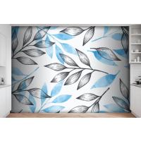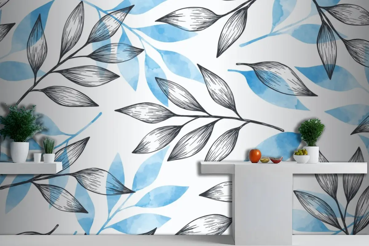 Gri Ve Mavi Yapraklı Basit Arka Plan Mutfak Duvar Kağıdı