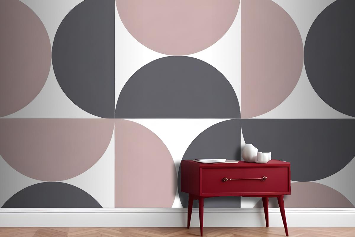Gri Ve Pembe Tonlarında Geometrik Şekiller Düzenlenmiş Antre Hol Koridor Duvar Kağıdı