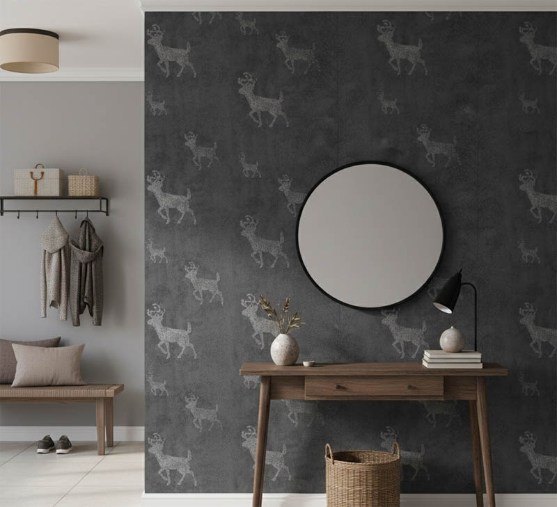 Gri Zemin Geyik Tasarım Duvar Kağıdı 3004
