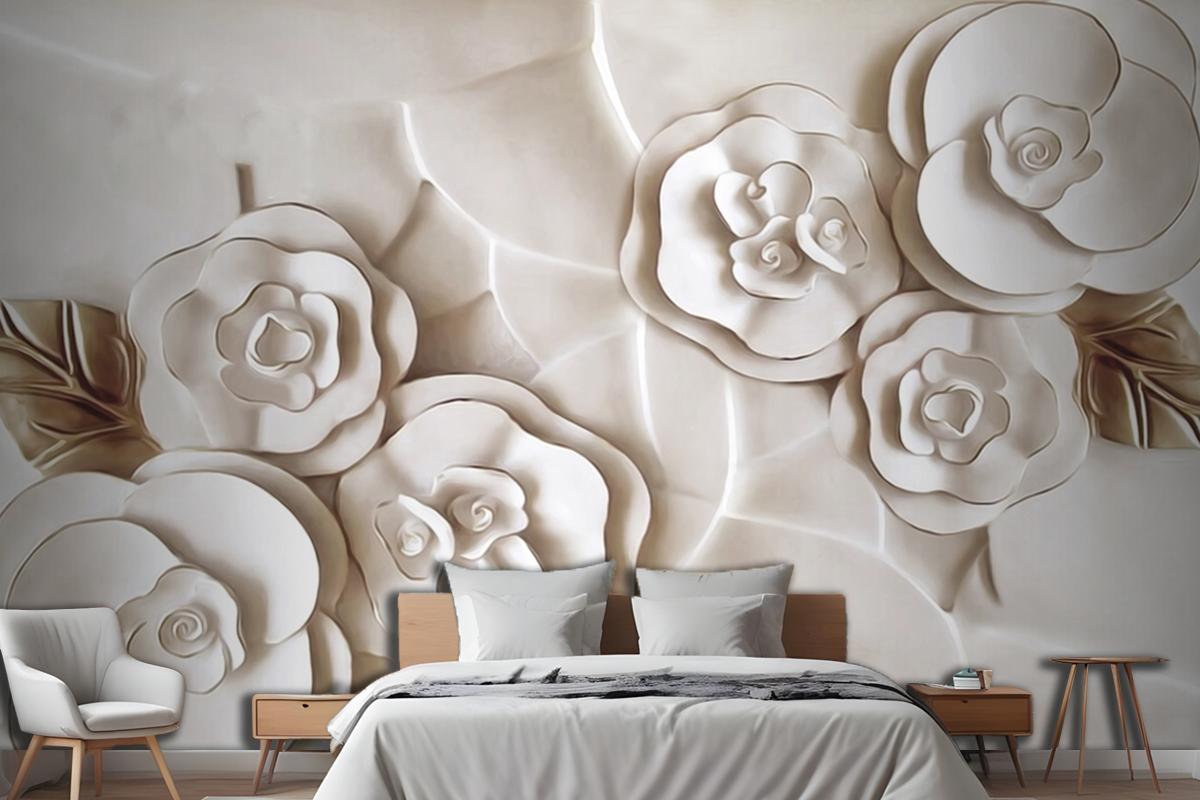 Güzel Beyaz Mermer Çiçek Yatak Odası Duvar Kağıdı