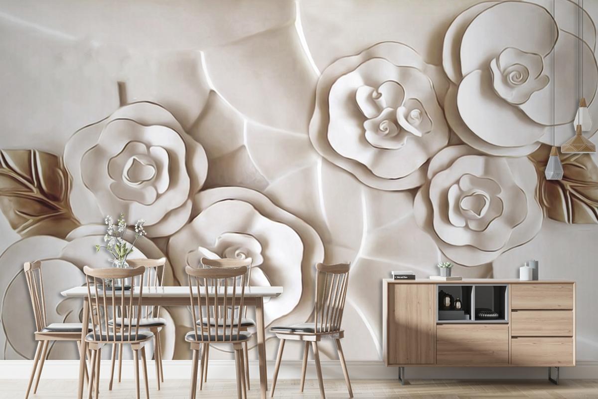 Güzel Beyaz Mermer Çiçekli 3D Duvar Kağıdı