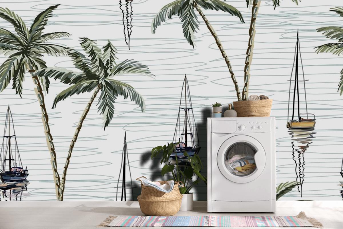 Güzel Botanik Dikişsiz Desen Arka Plan Hindistan Cevizi Palmiye Ağaçları Duvar Kağıdı