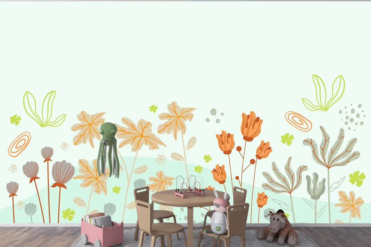 Güzel Ve Yaratıcı Çiçekli Çocuk Odası Duvar Kağıdı