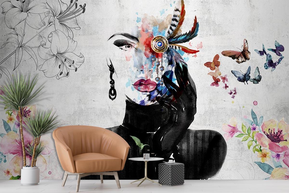 Güzellik Salonu Suluboya Tarzı Duvar Kağıdı