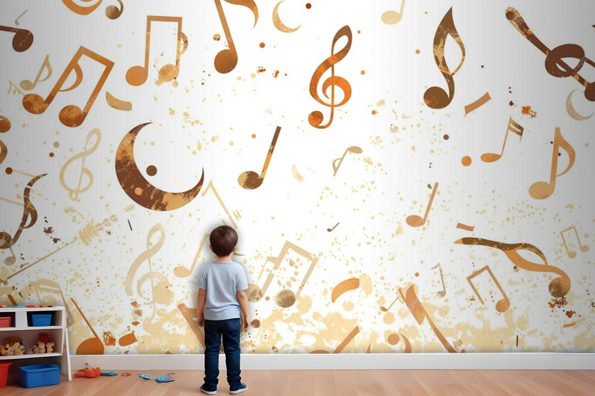 Havada Uçan Bir Grup Müzik Notası Çocuk Odası Duvar Kağıdı