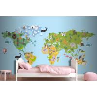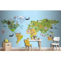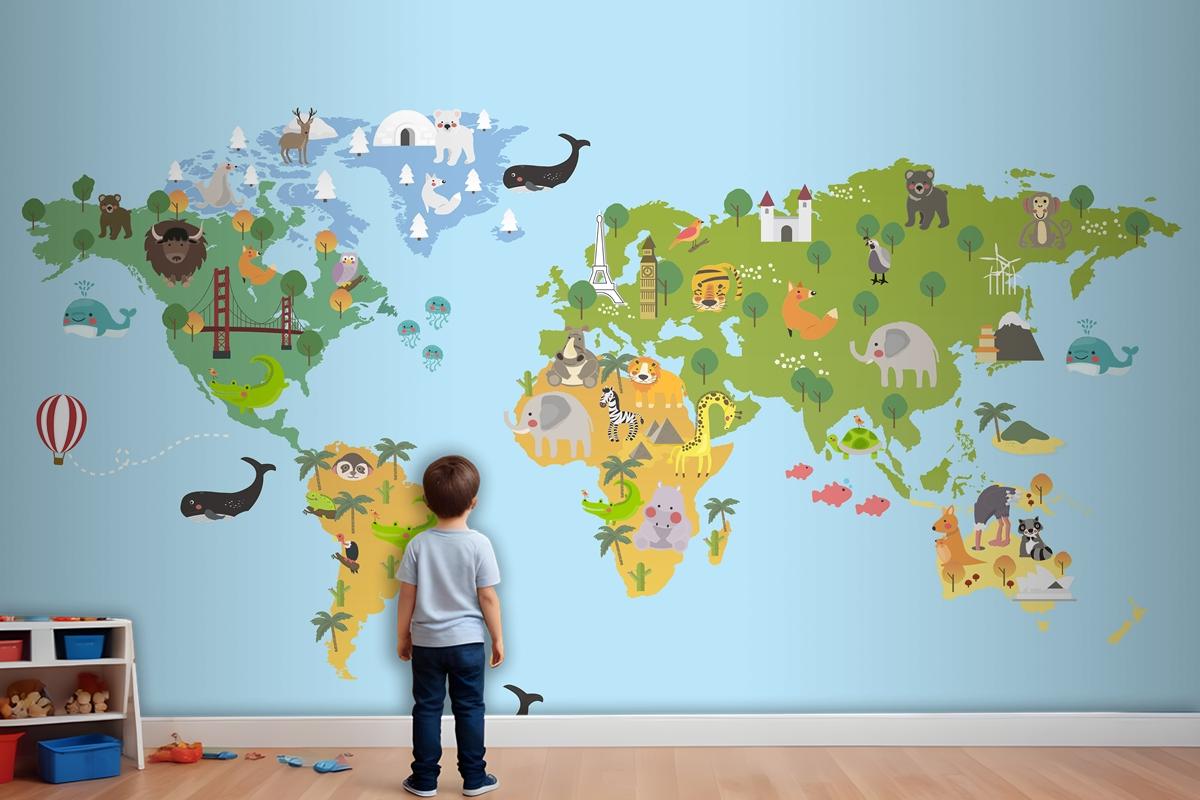 Hayvan Dünya Haritası Çocuk Odası Duvar Kağıdı