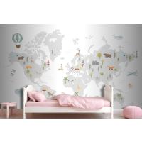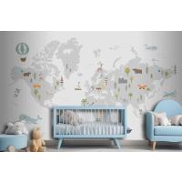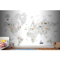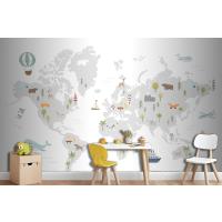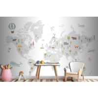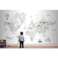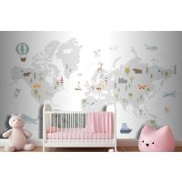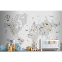 Hayvan Evleri Doğa Elemanları Çocuk Odası Duvar Kağıdı Ile Dünya Haritası