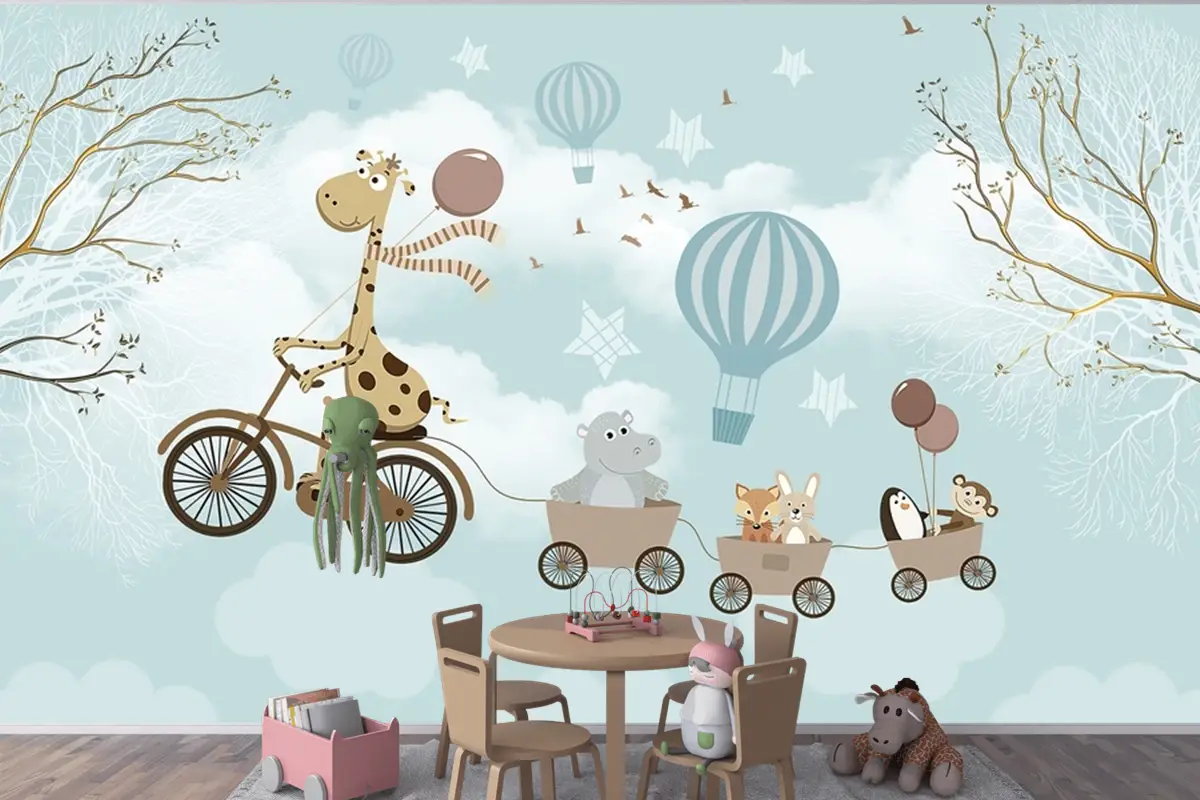 Hayvanlar Fil Zürafa Çocuk Odası Duvar Kağıdı
