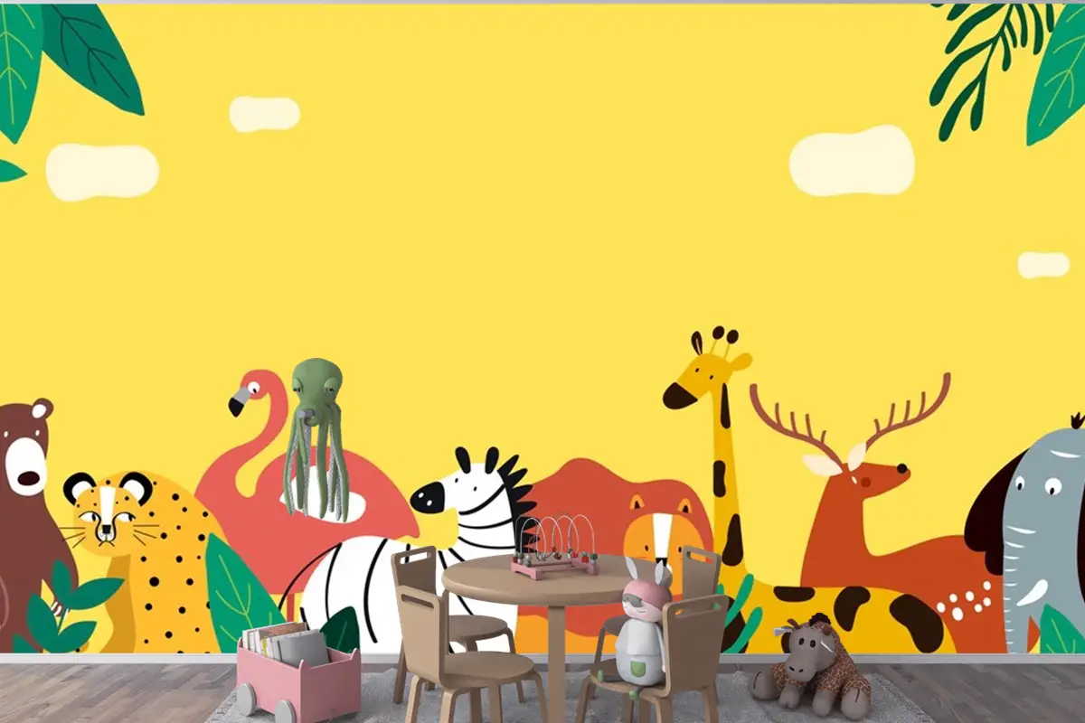 Hayvanlar Tema Şablonu Vektör Çocuk Odası Duvar Kağıdı