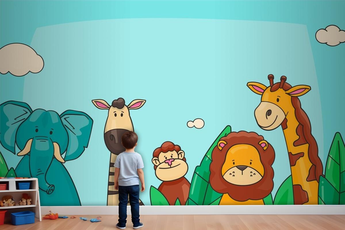 Hayvanlarla Elle Çizilmiş Dünya Hayvanları Günü Arka Planı Çocuk Odası Duvar Kağıdı