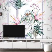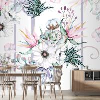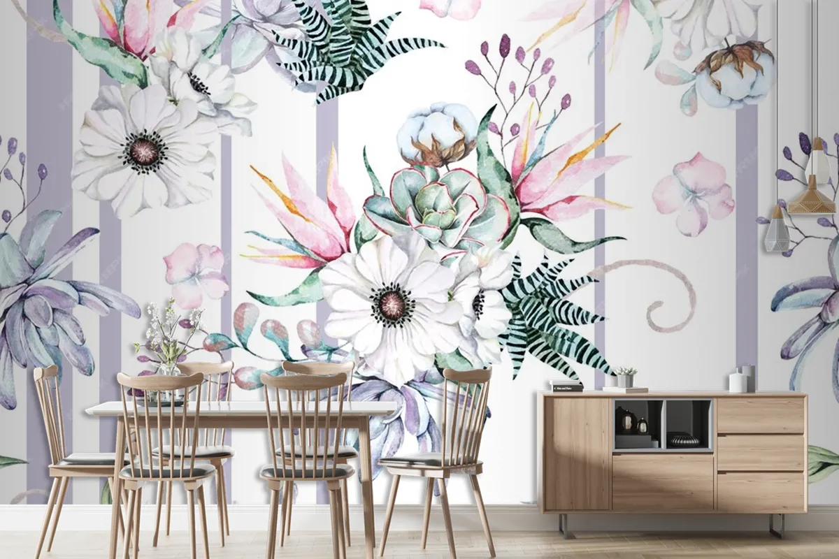 Heliconia Çiçek Anemon Echeveria Dikişsiz Desen Duvar Kağıdı