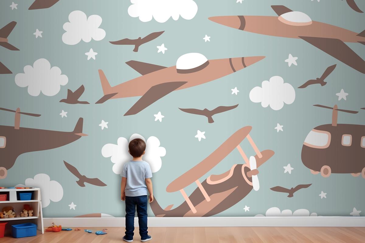 Hipster Doodles Renkli Dikişsiz Desen Düzlem Çizimi Çocuk Odası Duvar Kağıdı