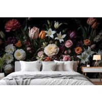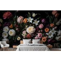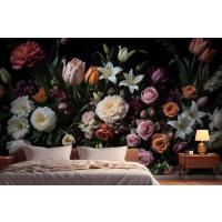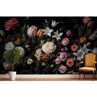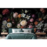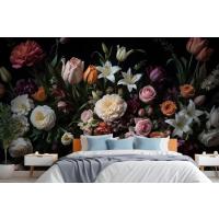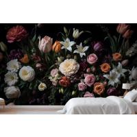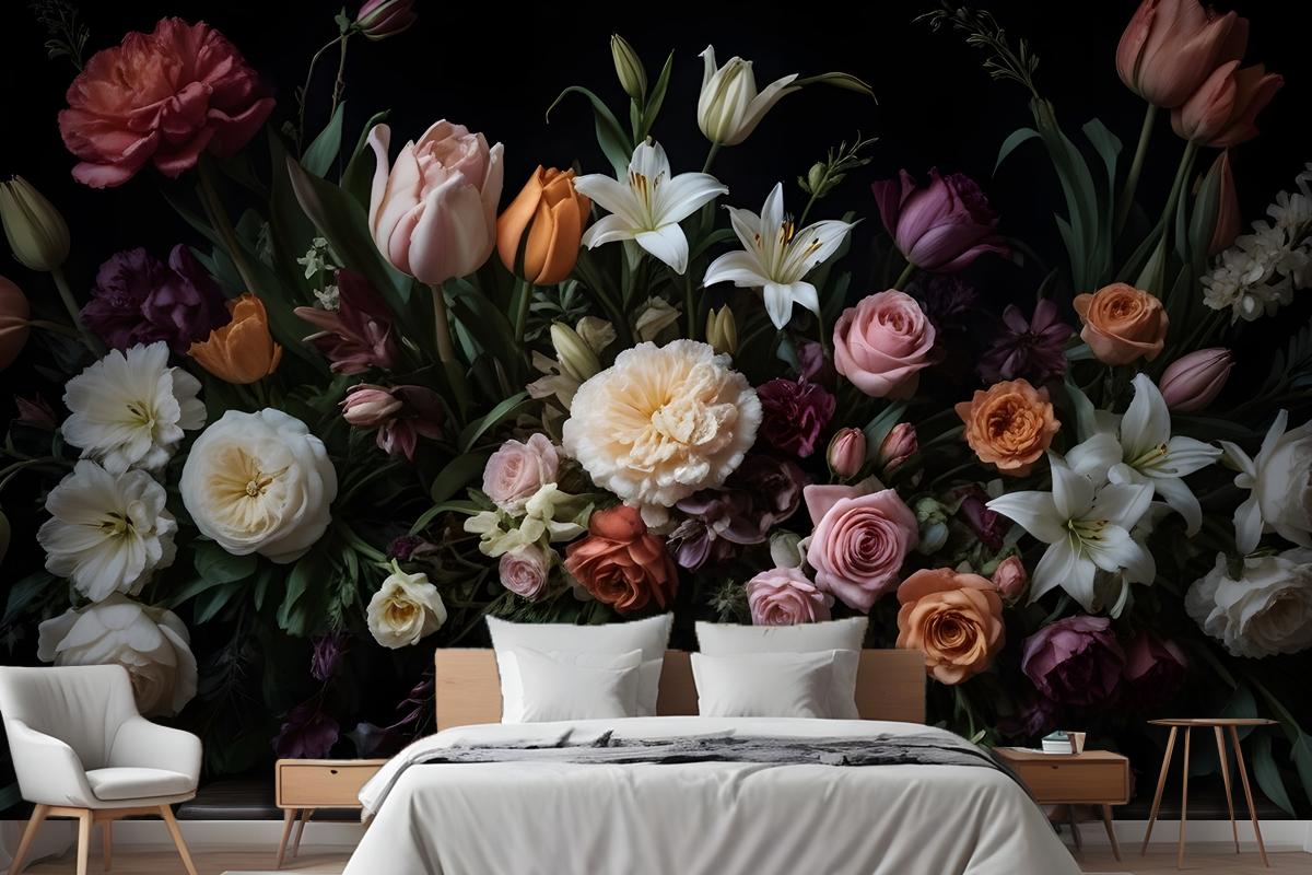 Hollandalı Koyu Çiçekler Yatak Odası Duvar Kağıdı