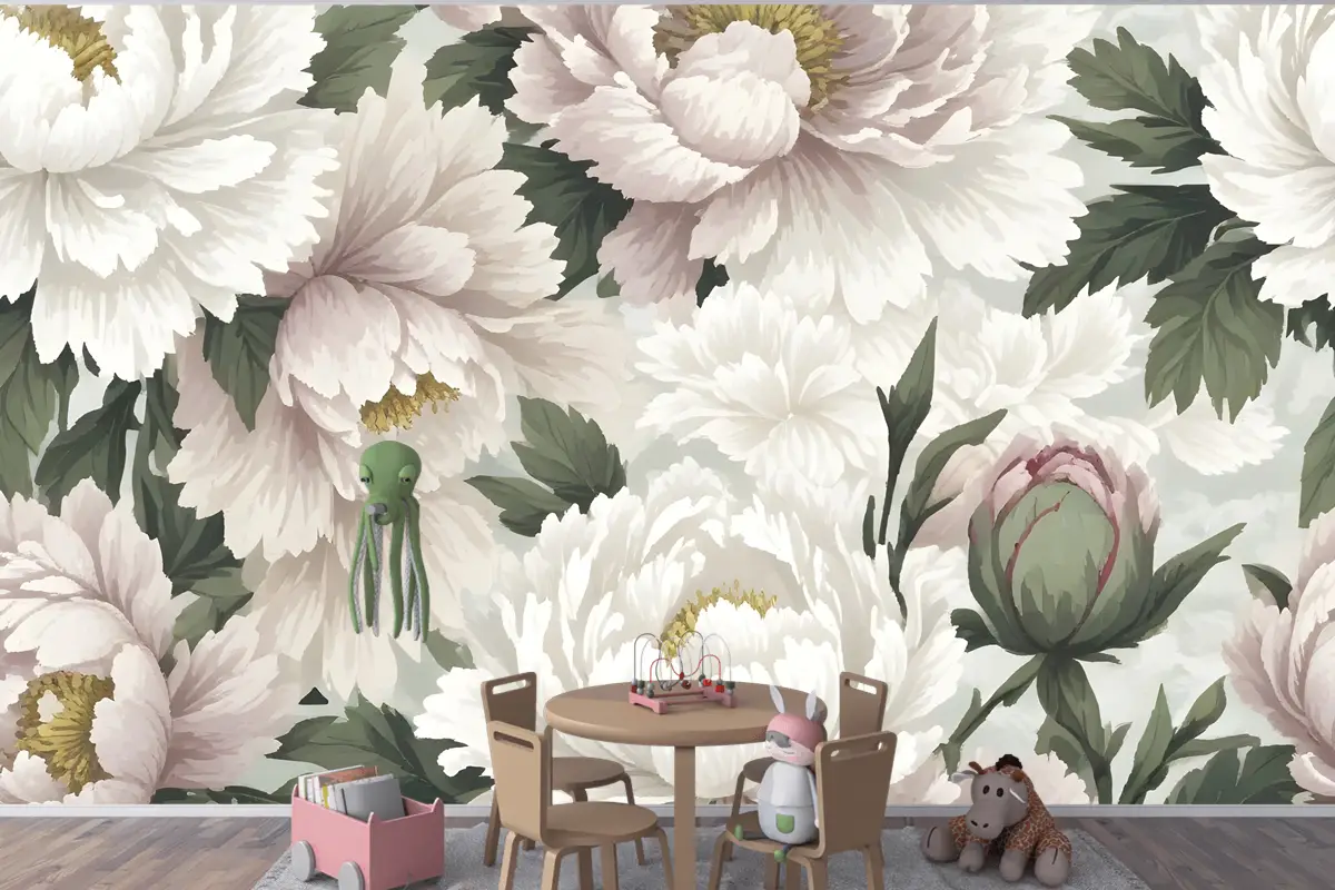 Hollandalı Pembe Şakayık Çiçek Çocuk Odası Duvar Kağıdı