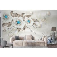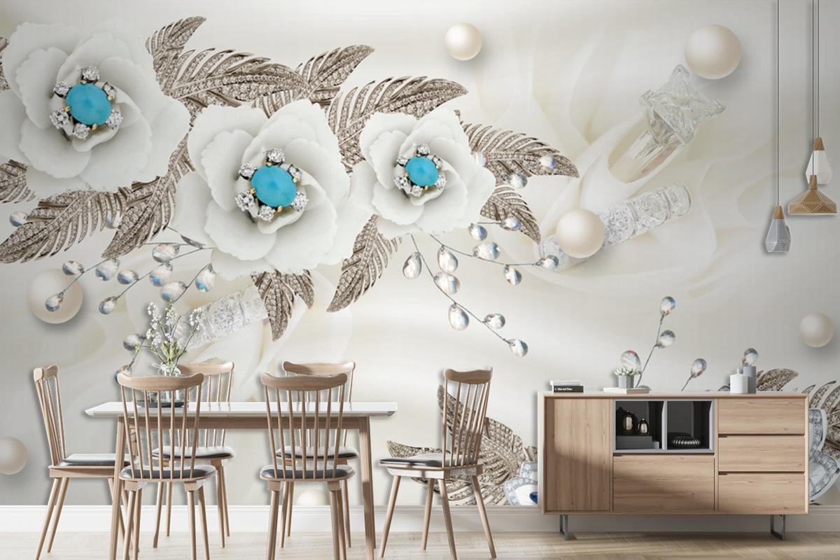 İncili Çiçekli Arka Planlı 3D Duvar Kağıdı