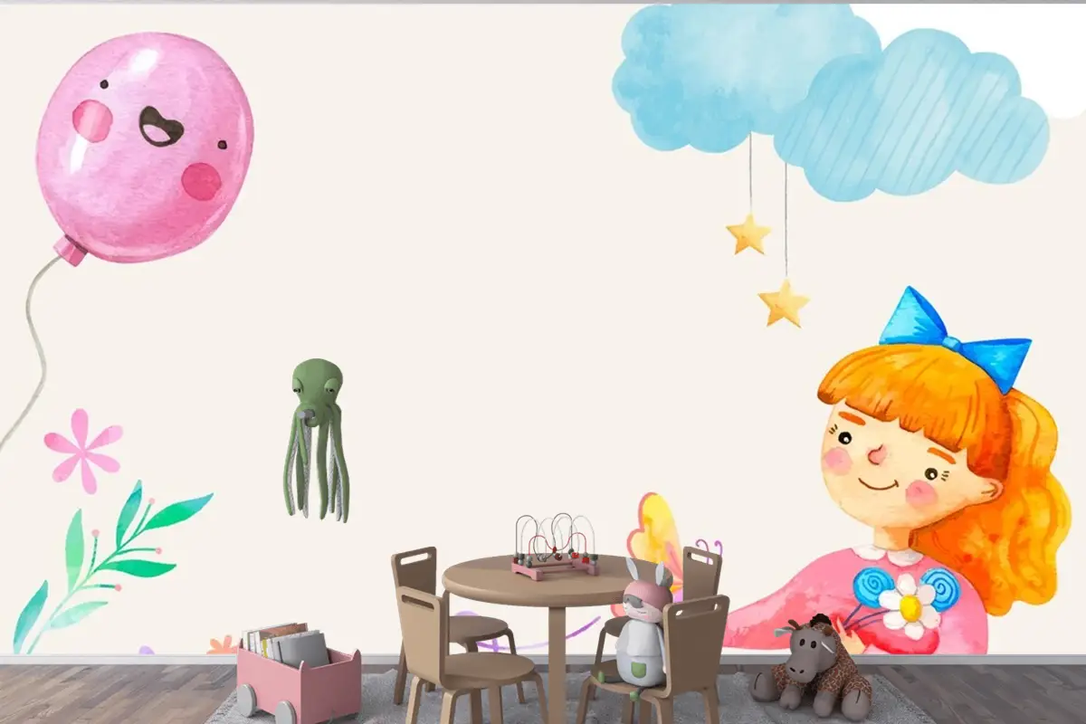 İspanyolca Arka Plan Çocuk Odası Duvar Kağıdı Duvarında Suluboya Çocuk Bayramı