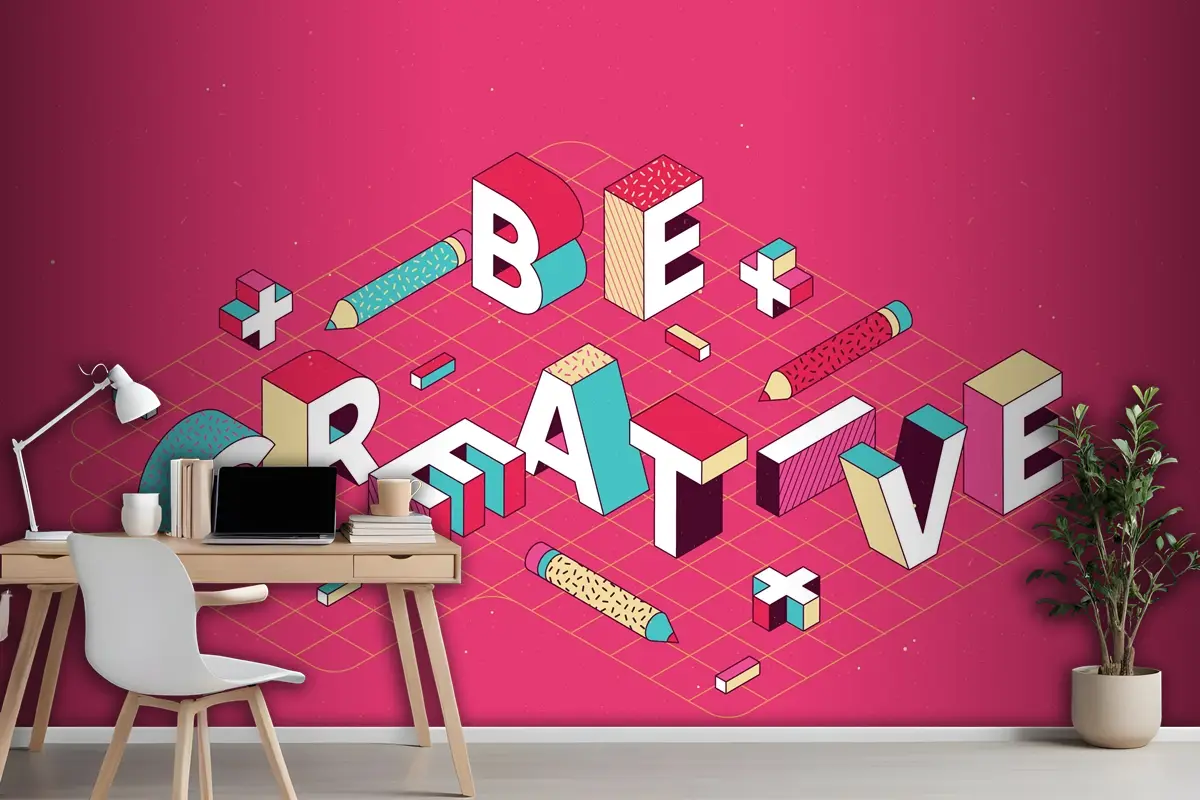 İzometrik Tipografik Mesaj Ofis Duvar Kağıdı