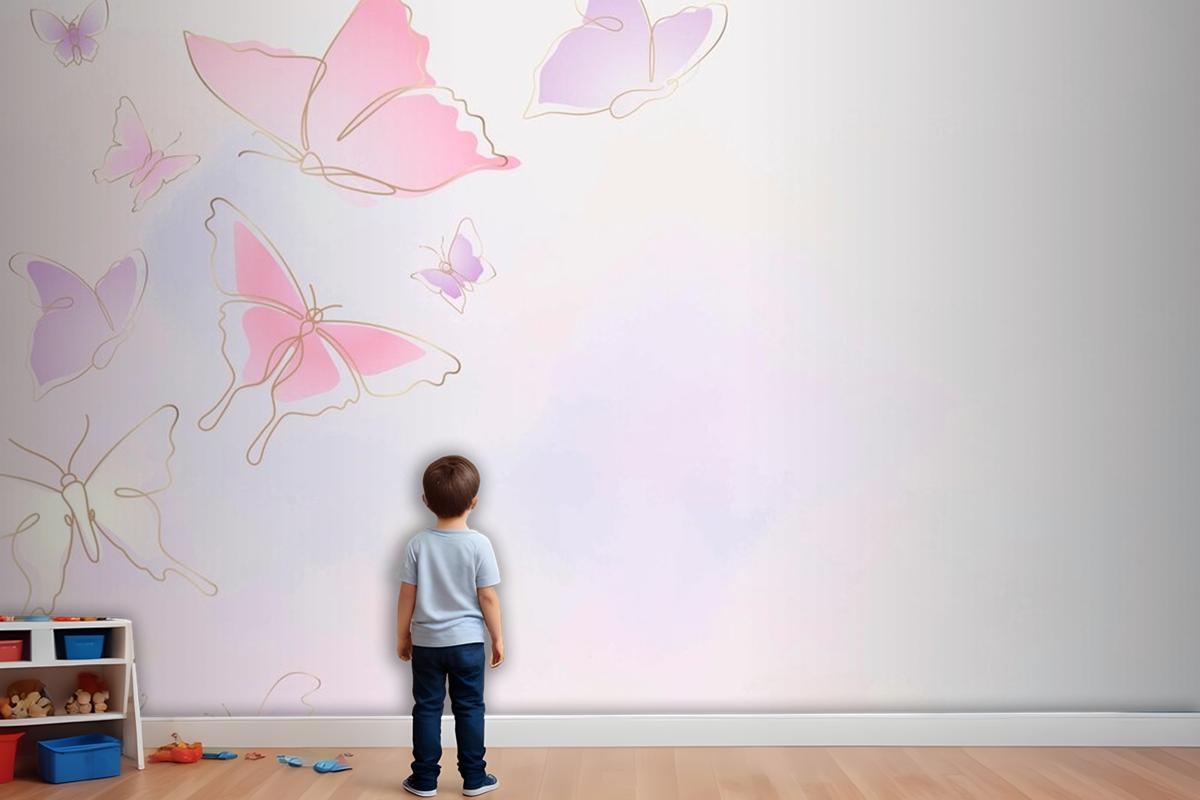 Kadınsı Kelebek Arka Plan Pembe Sınır Çocuk Odası Duvar Kağıdı