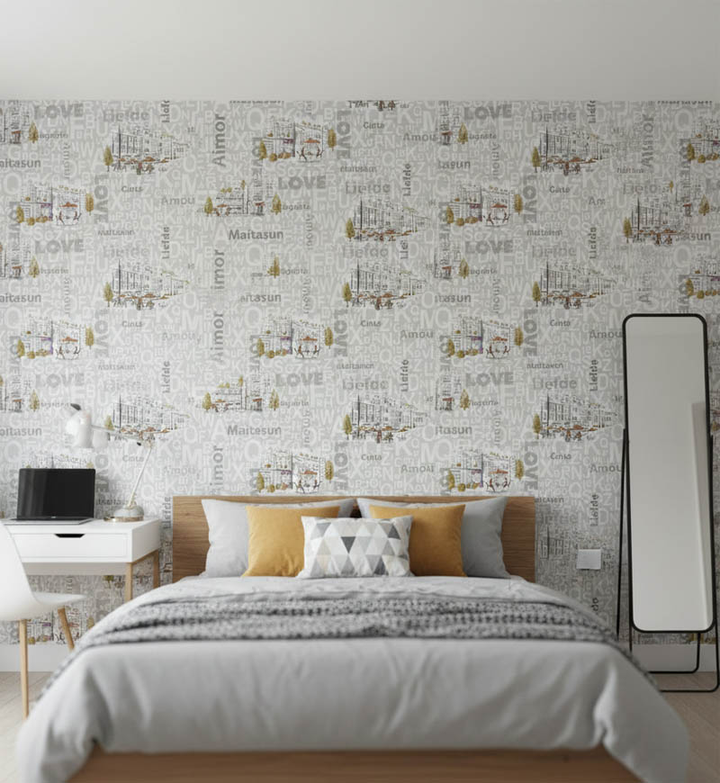 Kafe Harfli Şehirli Gri 16 M2 Duvar Kağıdı 10362-2