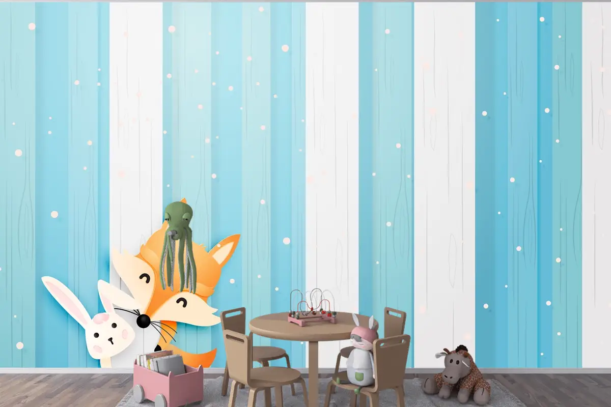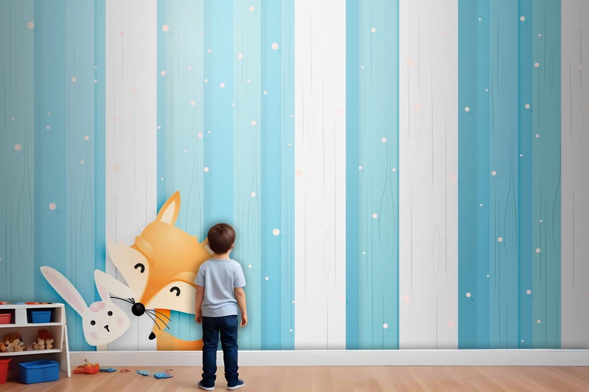 Kağıt Sanat Tarzı Pastel Düzeni Çocuk Odası Duvar Kağıdı Ile Ahşapta Sevimli Tilki Ve Tavşan