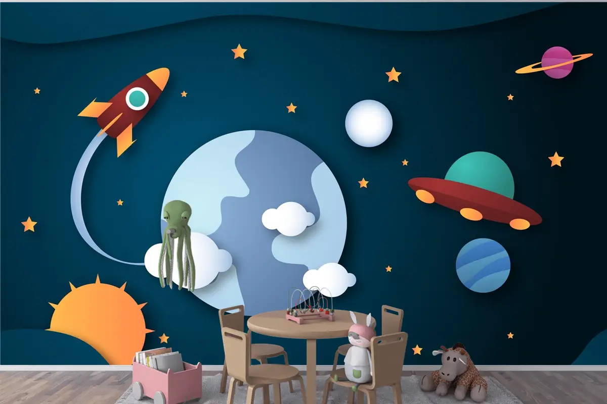 Kağıt Stili Galaxy Arka Plan Çocuk Odası Duvar Kağıdı