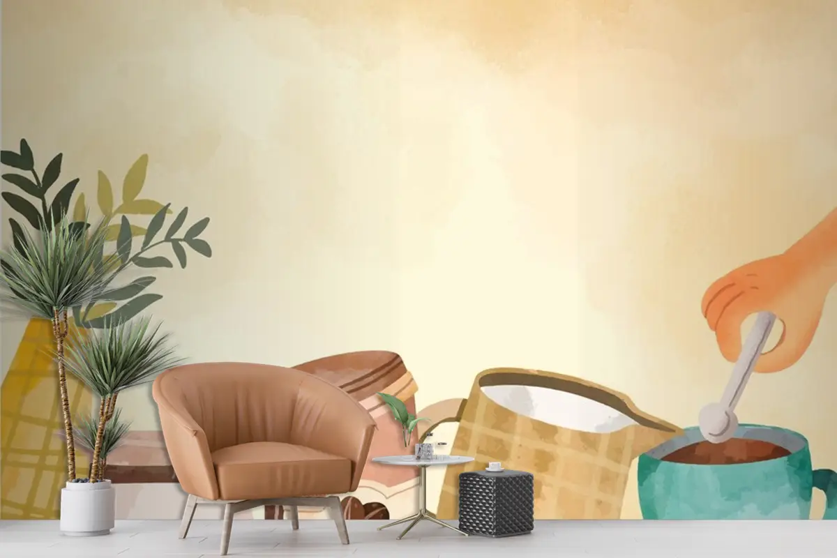 Kahve Günü Kutlamaları Için Suluboya Cafe Duvar Kağıdı
