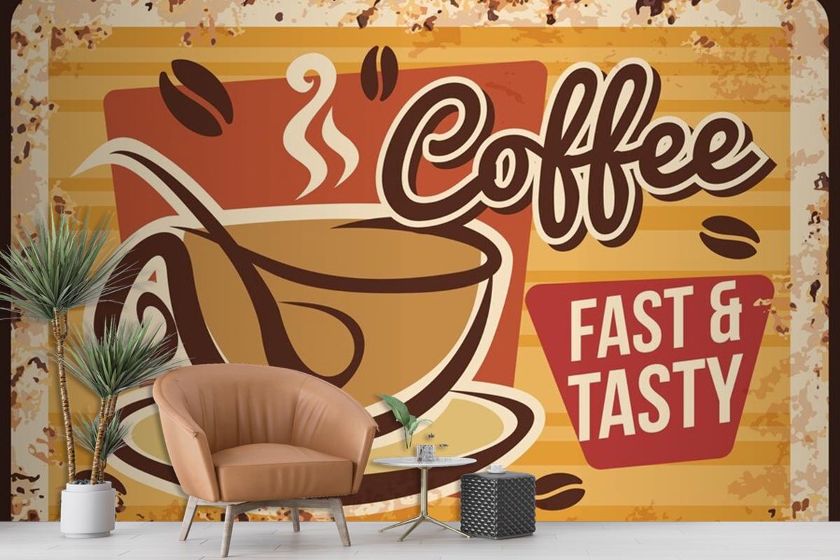 Kahve Paslı Metal Levha Vintage Cafe Duvar Kağıdı