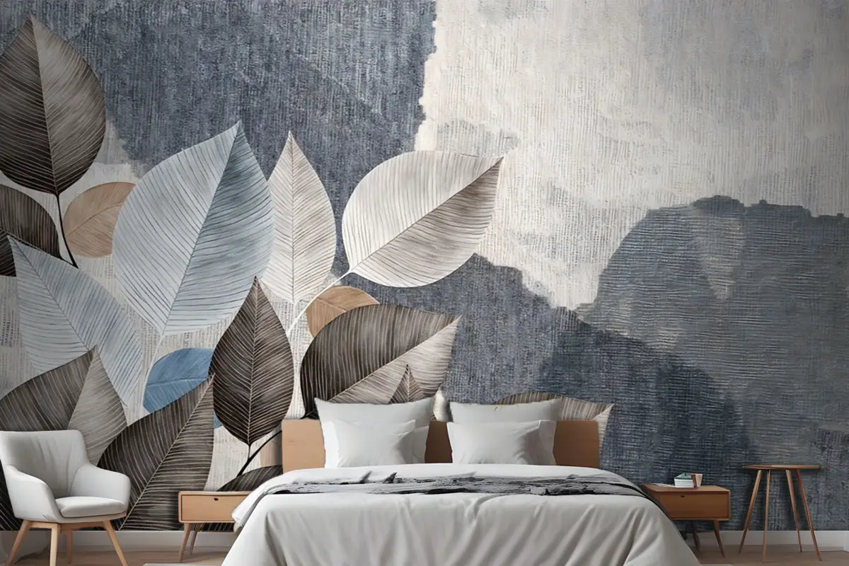 Kahve Tonlarında Dokulu Yapraklar Yatak Odası Duvar Kağıdı