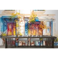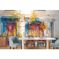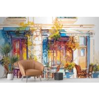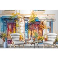 Kaldırım Kafe Veya Restoran Sulu Boya Duvar Kağıdı