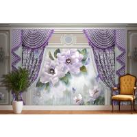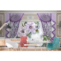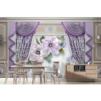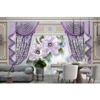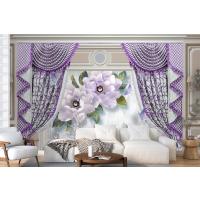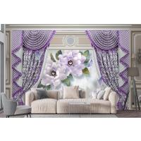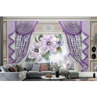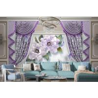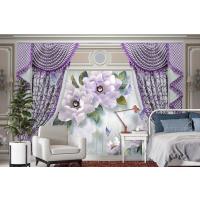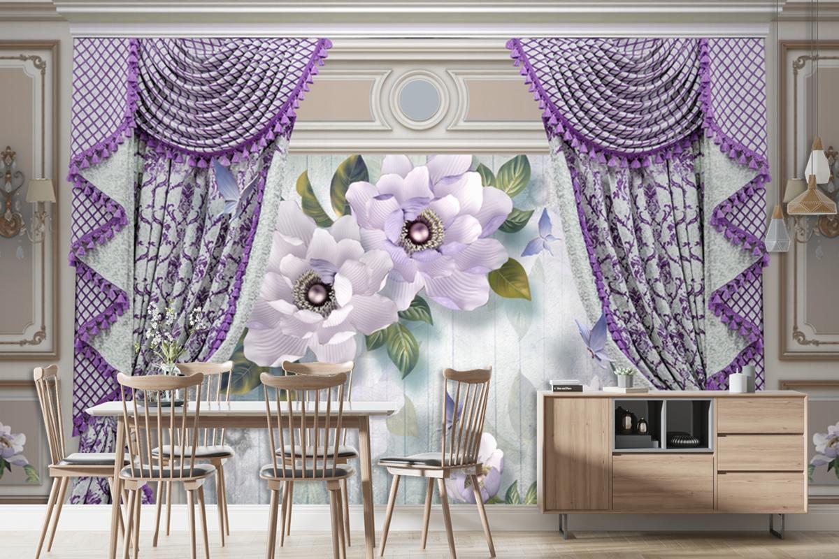 Kalıplı Klasik Iç Duvar Mor Perde Ve Çiçek 3D Duvar Kağıdı