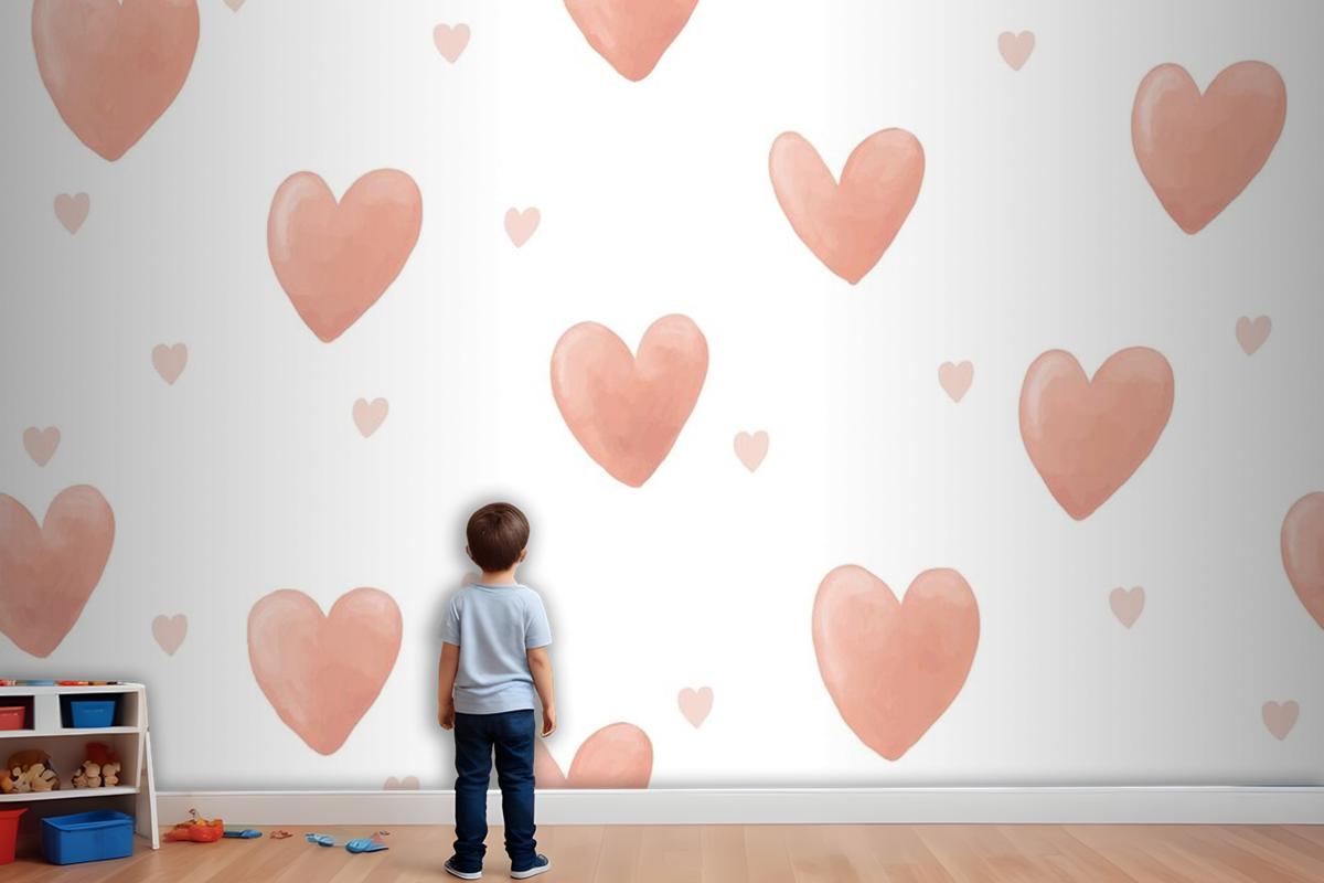 Kalp Arka Plan Sevimli Suluboya Çocuk Odası Duvar Kağıdı