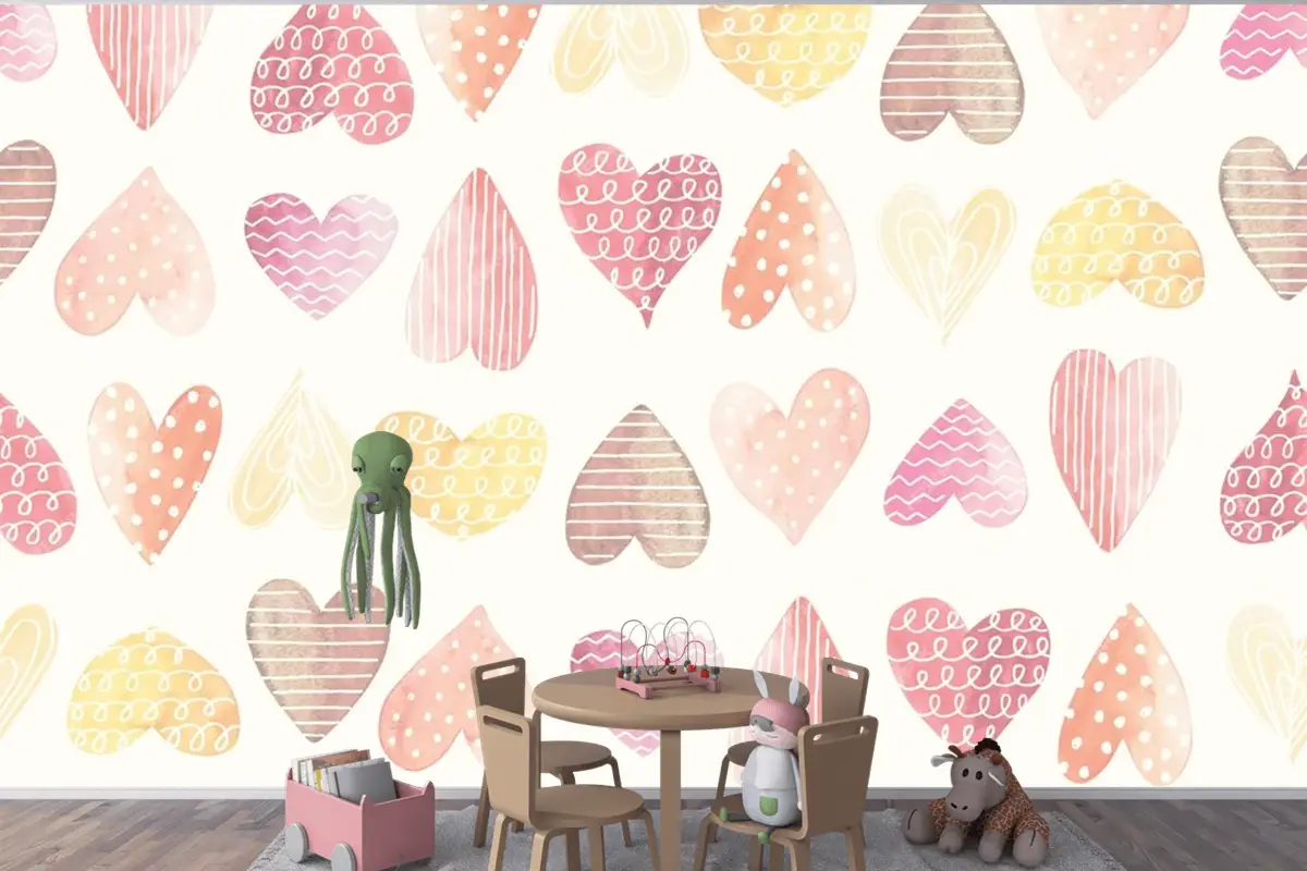 Kalp Rengi Çocuk Odası Duvar Kağıdı