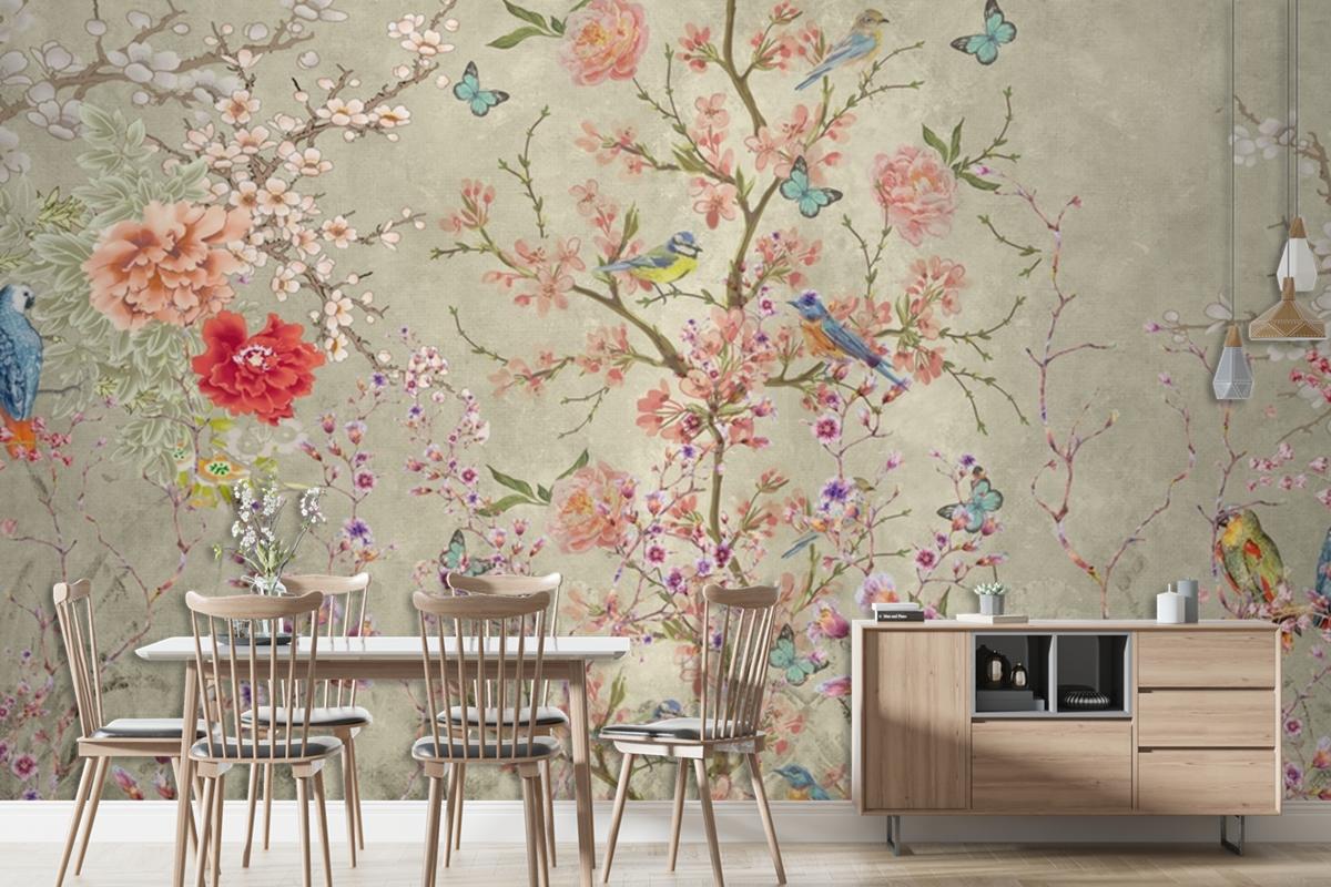 Kaprisli Kuşlar Çiçek Açıyor Doğanın Lezzetinin Dansı Duvar Kağıdı