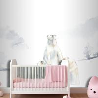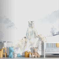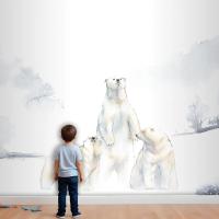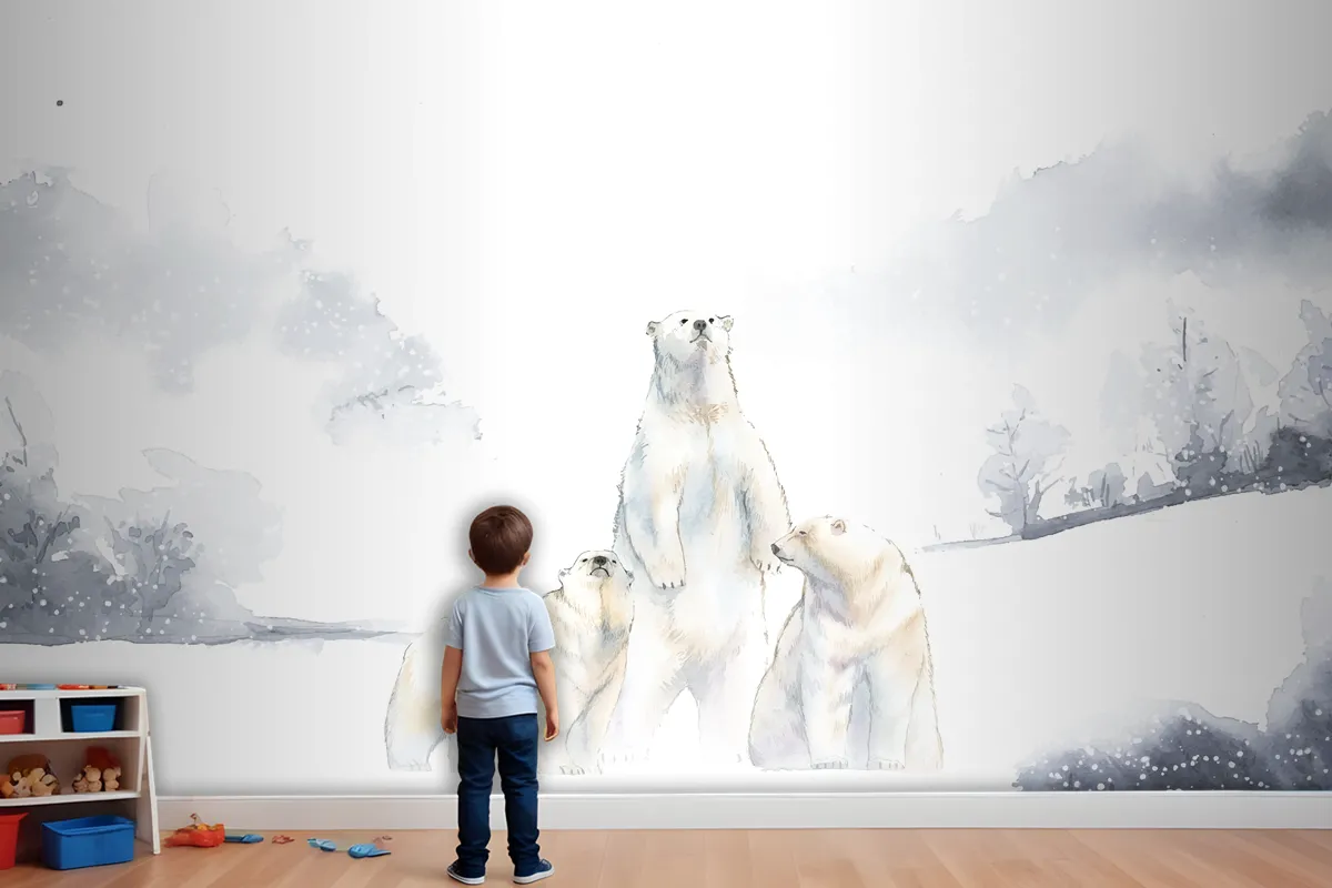 Karda Kutup Ayıları Suluboya Çocuk Odası Duvar Kağıdı