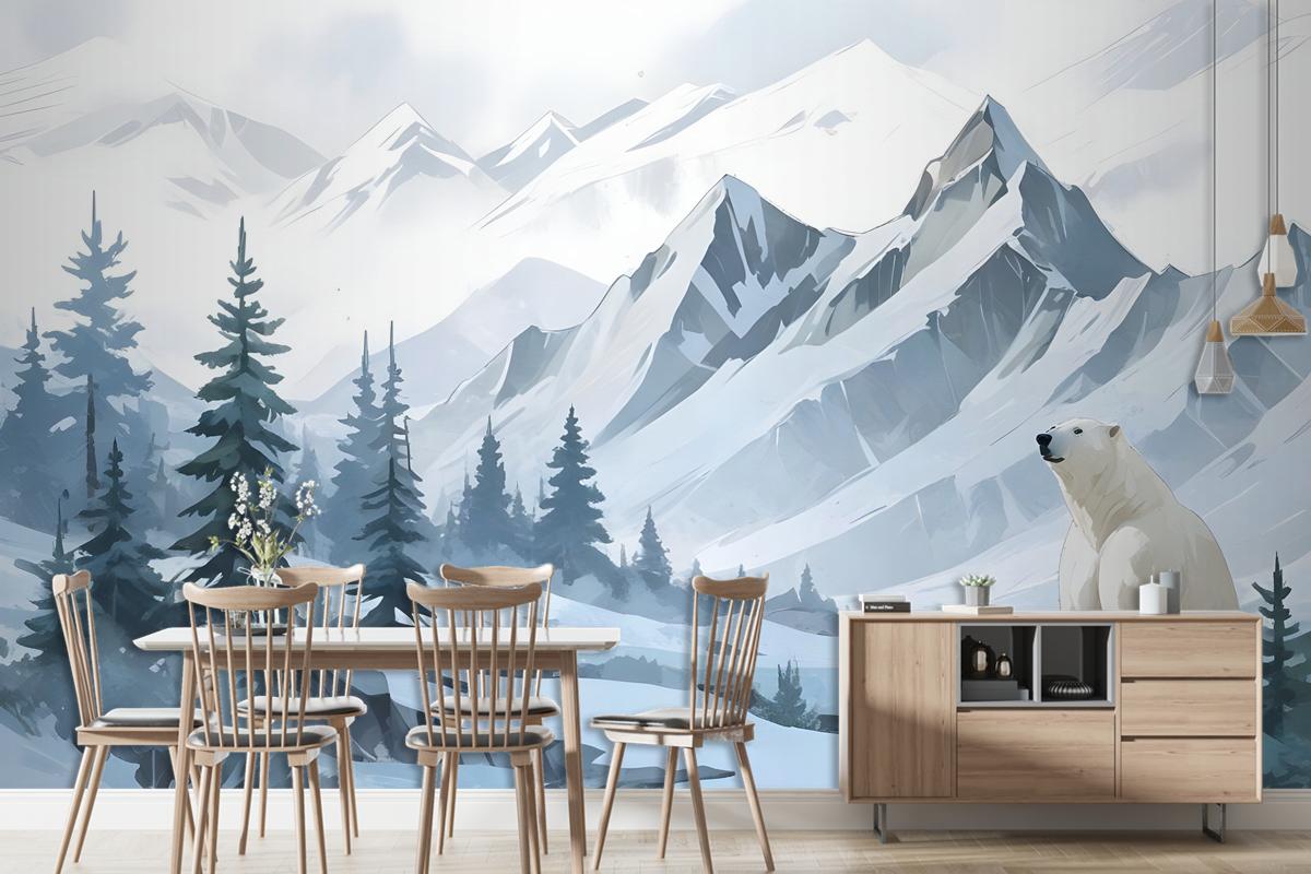 Karikatür Ayı Duvar Kağıdı Ile Çocuklar Dağ Manzarası