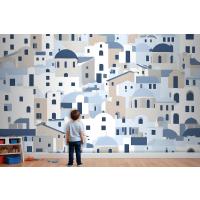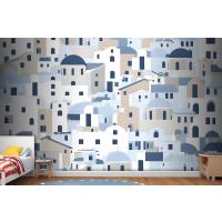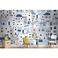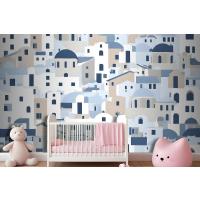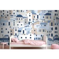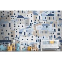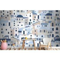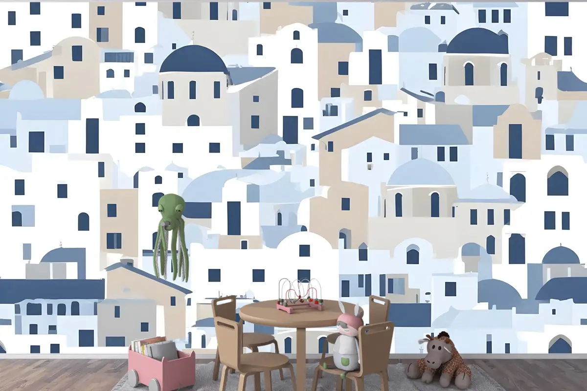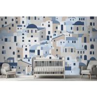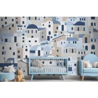 Karikatür Eski Mavi Yunan Evi Çocuk Odası Duvar Kağıdı