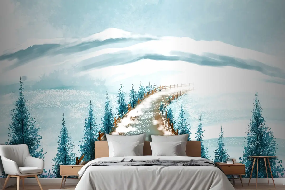Karlı Noel Ağacı Kartı Yatak Odası Duvar Kağıdı Ile Kış Manzarası