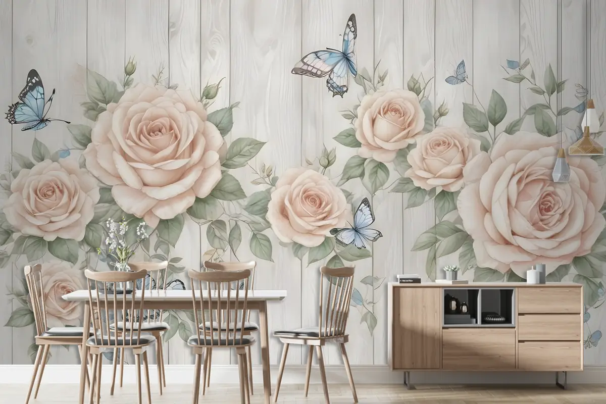 Kelebek Duvar Kağıdı Ile Yumuşak Çiçek