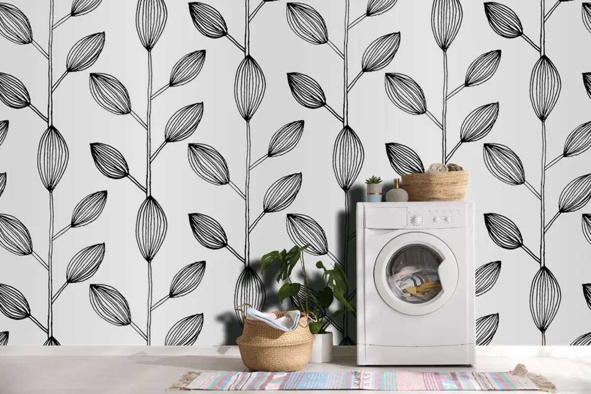 Kesintisiz Tek Renkli Yaprak Desen Tasarımı Duvar Kağıdı