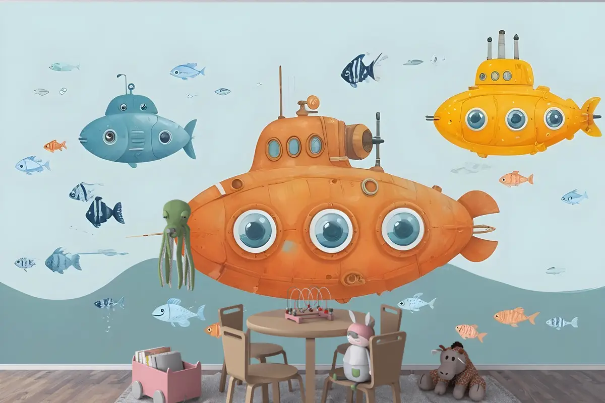 Kids Boys Denizaltı Çocuk Odası Duvar Kağıdı Ile Suluboya Sualtı