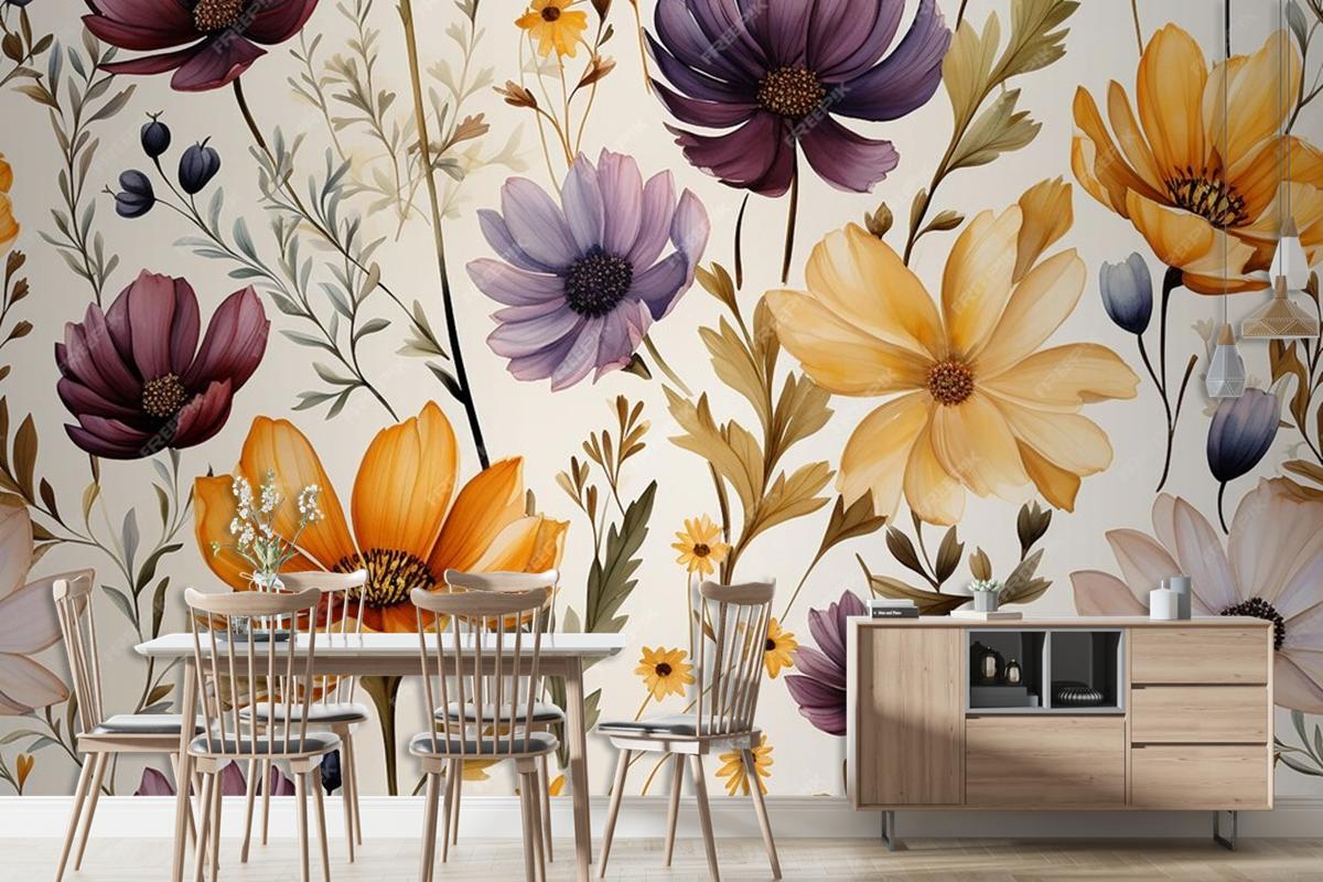 Kır Çiçekleri Ile Çiçekli Çerçeve Arkaplan Suluboya Duvar Kağıdı