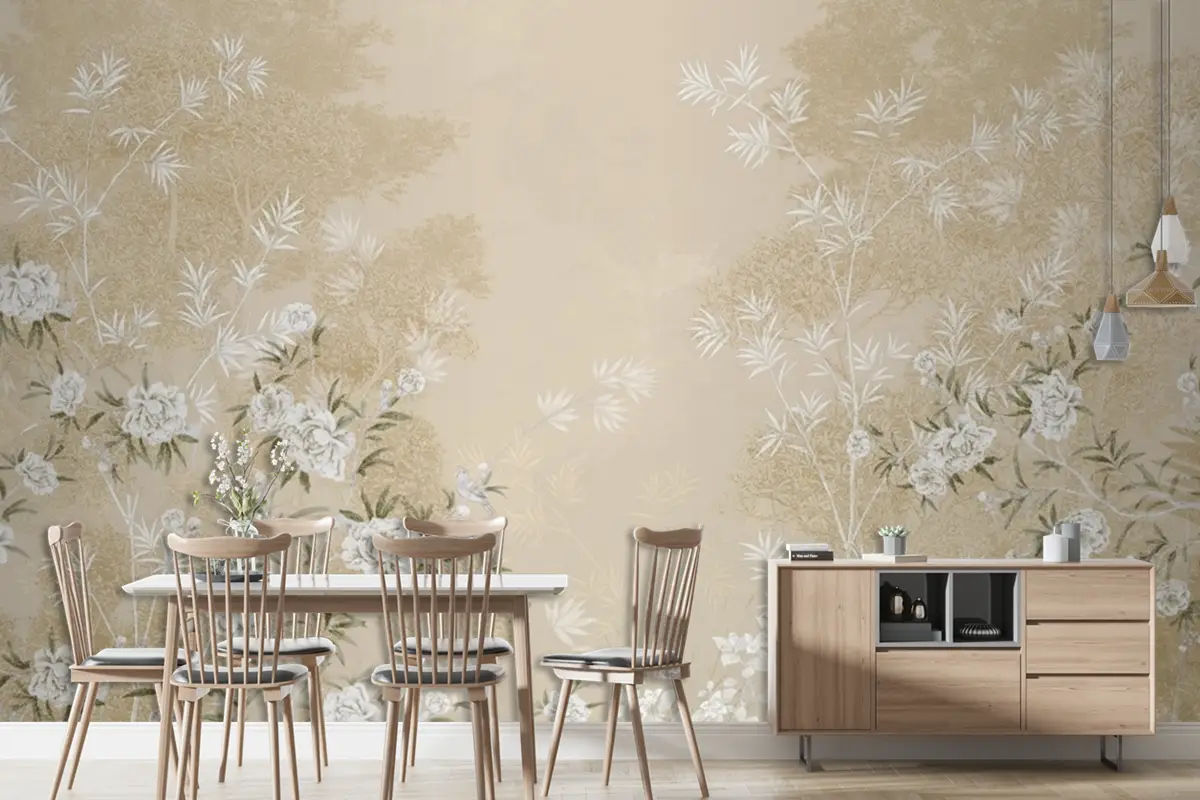 Kiraz Çiçeği Çiçekleri Ve Kuş Duvar Kağıdı Ile Chinoiserie