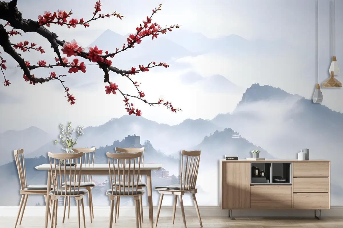 Kiraz Çiçeği Duvar Kağıdı Ile Karlı Dağ Manzarası