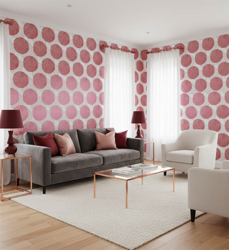 Kırmızı Beyaz Parlak Çiçek Desenli Duvar Kağıdı 3019