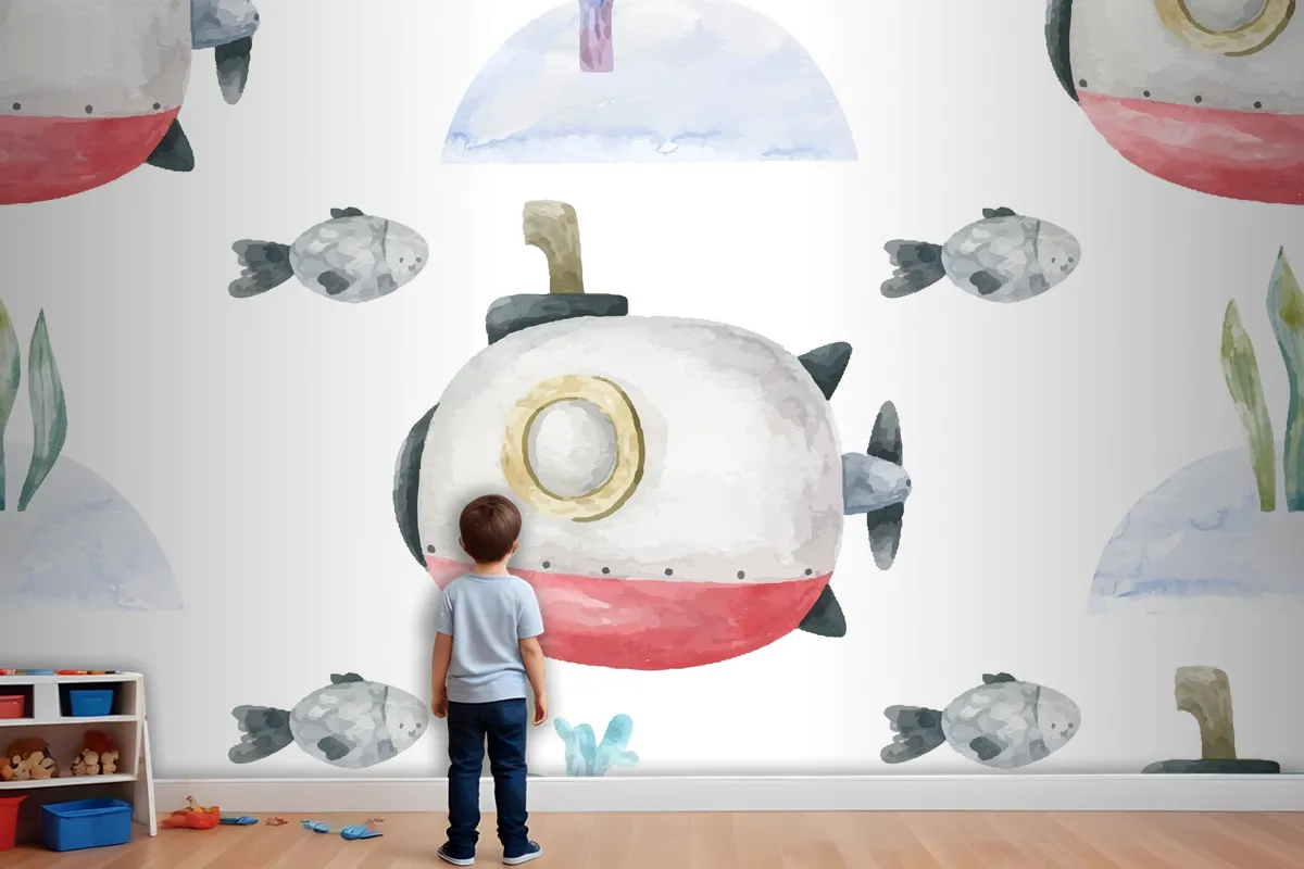 Kırmızı Denizaltı Ve Sualtı Çocuk Odası Duvar Kağıdı Ile Sorunsuz Arka Plan