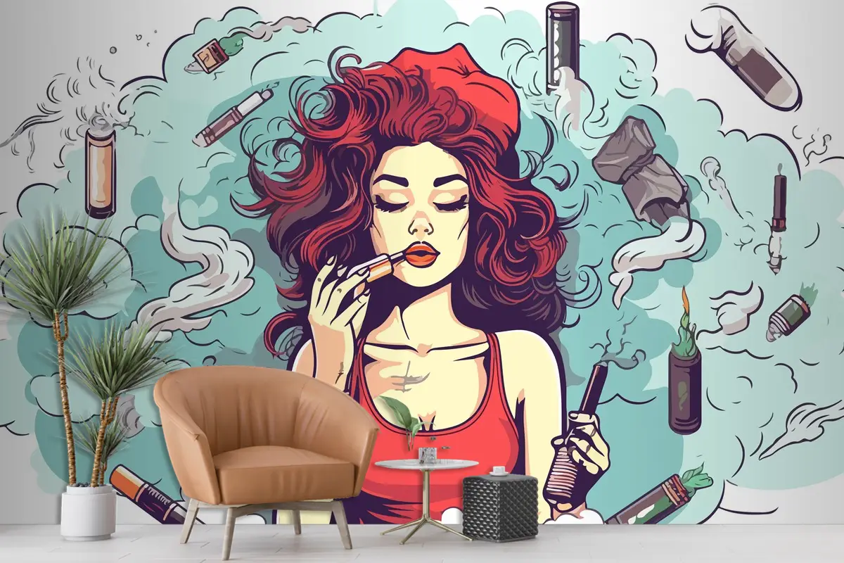 Kırmızı Saçlı Kadın Güzellik Salonu Tarzı Duvar Kağıdı