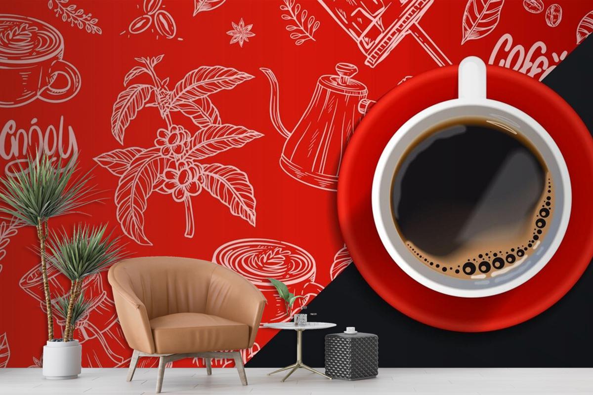 Kırmızı Siyah Arka Plan Arap Kahve Temalı Cafe Duvar Kağıdı